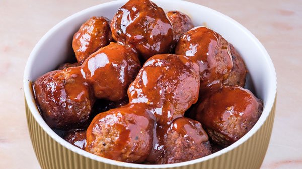 Tender, seasoned meatballs coated in a sweet and savoury honey garlic sauce or barbeque sauce.